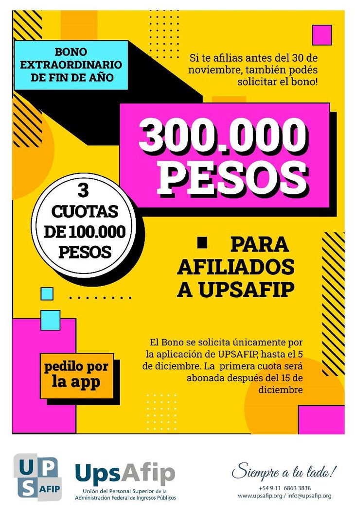 Para quienes aún no están afiliados al sindicato, podrán hacerlo hasta el 30 de noviembre y recibir el bono de todas formas. Para poder cobrarlo, hay que solicitarlo únicamente a través de la aplicación de USAFIP y hay tiempo hasta el 5 de diciembre.